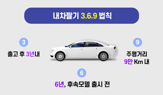 새 모델이 출시되기 전 6년 내에 판매하는 것이 유리하다는 것입니다. 차량은 주기적으로 페이스 리프트를 거쳐 디자인이 바뀝니다. 신 모델이 출시되고 나면 구 모델의 차량가격은 크게 떨어지는데, 비교적 좋은 가격에 판매하고 싶다면 차량을 구입하고 나서 6년이 지나기 전, 새 모델이 출시되기 전에 처분하는 것이 좋습니다.